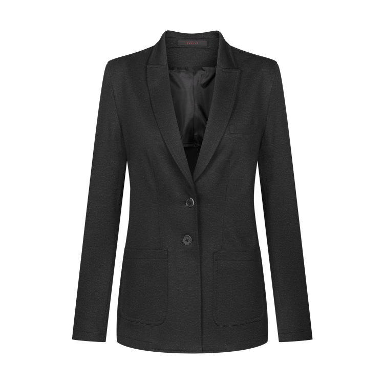 2-Knopf, Spitzfacon, 2 aufgesetzte Taschen, 1 Brustleistentasche, Seitenschlitze, halbgefüttert, 53 % Polyester, 43 % Viskose, 4 % Elasthan