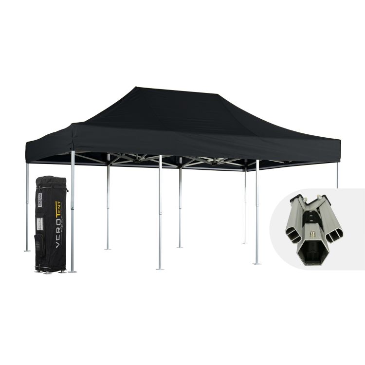 Professionelles Alu Faltzelt 4x6m mit Dach. Für lange und häufige Verwendung. Extrem stabil, mit ergonomischem, reibungslosem Aufbau ohne Bücken. 100% wasserdicht. Druck, Seitenteile, Licht etc verfügbar. Das vermutlich stabilste Zeltgestell am Markt. Extrem starke Bauweise hält Wind und Wetter locker stand. Trotzdem einfach und reibungslos aufzustellen. Gerader Stand mit gut gespanntem Dach. Professionelle Erscheinung zB als Marktzelt, Gastgartenzelt, Cateringzelt, Barzelt, Verkaufszelt, Lagerzelt. 20 Jahre Forschung und Erfahrung. Härtetest Vermietung: Überlebensdauer eines Luxea Faltzelt (4x4) mehr als 10 Jahre. Aufbau mit dem ergonomischen Einrastsystem. Fingerschonende Druckköpfe auf Komforthöhe, 3-fach höhenverstellbar. Durch die Höhe und die Kraftwirkung nach außen wird der Aufbau aus der Körpermitte, ohne wesentliches Bücken, möglich. Aufbau zu zweit möglich, glatter Untergrund (zB Asphalt) hilfreich. Zeltgestell aus hochwertigem, eloxiertem Aluminium mit Speziallegierung und hohem Härtegrad - noch wetterbeständiger und robuster gegen Kratzer. 50mm Hexagon Profile mit doppelter Nutung, aussen und innen. Wandstärke 2,5mm. Verbinder aus Alu-Druckguss. Separate Form für jedes Teil, daher dickes beinahe unzerbrechliches Material. Ideal planenschonend gerundete Kanten. Gleitteile aus Kunststoff zwischen Verbindern und Profilen, sowie zwischen sämtlichen Aluteilen. Niemals Alu auf Alu. Daher einfacher Aufbau. Verschraubt mit M8 Spezialschrauben - Scheren bewegen sich auf glatter Oberfläche. Einfache Reparatur. Ersatzteile sind jederzeit verfügbar. Dach perfekt an das Gestell angepasst - professioneller Auftritt, besserer Wasserablauf. Dach und Seitenteile aus dem Premium Material Supratex 600D. Aufbau aus fünf Schichten, unter anderem PU-Beschichtung und UV-Lackierung 50+. Durchgefärbter Faden – lange Farbechtheit. Hochwertige Verarbeitung, Naht-Versiegelung mit Spezialband. Absolut wasserdicht. B1 brandhemmend. Abwischbar. Scheuerschutz an allen Reibungspunkten, Abspannringe, breiter Klett zur Befestigung am Gestell bzw der Seitenteile. Lieferumfang inklusive Tragetasche Premium+ für Faltpavillon inkl. Dach. Einfache Montage ohne Anheben des Faltzeltes. Kein Herausrutschen beim Transport. Robuster Stoff mit dicken Gummikanten. Optimale Lastverteilung durch umlaufende Gurten. Bequeme, gummierte Griffe. Abspannungs- und Verankerungsset mit Ankern und Gurten. Zubehör: Gewichte aus Stahl, mit Sand oder Wasser, Verankerungslösungen. Seitenteile, Beach-Flags, helle Beleuchtung, die immer am Gestell bleiben kann uvm. Zelt bedrucken mit Logo oder Foto beidseitig vollflächig möglich. Gestell: Aluminium mit Speziallegierung, reibungsloser Aufbau - 4 Standbeine - Durchgangshöhe 2-2,35 m - Hexagon Profil 50mm; 2,5mm Wandstärke - Nutung innen und außen für mehr Stabilität - Speziallegierung (AIMgSi0,5-F22)mit extrem hohem Härtegrad(>15) - Verbinder aus Aluminium Druckguss - verschraubt mit M8 Spezialschrauben - Einrastsystem mit rotem Druckknopf - ergonomischer Aufbau ohne Bücken - Alu-Fußplatte, verschweißt - Scherenprofil 18x30, Wandstärke 2mm - Scheren oval, genutet, mit 2 Stützrippen - Ersatzteile erhältlich Dach: Premium Material Supratex, Polyester 600D - Aufbau aus 5 Schichten, inkl. PU Beschichtung - 100% wasserdicht - versiegelte Nähte - UV stabilisiert 50+ - brandhemmend nach Norm EN13501-1, Klasse B-s1,d0 - abwischbar - beidseitig bedruckbar