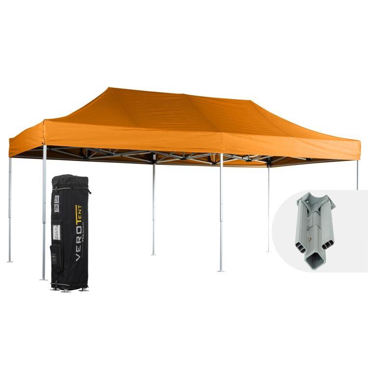 Leichtes Profi Alu Faltzelt 4x8m mit Dach. Für die tägliche, professionelle Verwendung. Ergonomischer, einfacher Aufbau ohne Bücken. 100% wasserdicht. Druck, Seitenteile, Licht, farbige Zeltgestelle uvm erhältlich. Leichte, stabile Konstruktion. Einfaches Handling und reibungsloser Aufbau. Professionelle optische Erscheinung. Ideal für häufigen Auf- und Abbau zB als Marktzelt oder Cateringzelt. Aufbau mit dem roten Druckknopf auf Komforthöhe. 3-fach Höhenverstellbar. Durch die Höhe und die Kraftwirkung nach außen wird der Aufbau aus der Körpermitte, ohne wesentliches Bücken, möglich. Zeltgestell aus hochwertigem, eloxiertem Aluminium mit Speziallegierung und extrem hohem Härtegrad. Sehr stabile, leichte Profile mit durchdachter Nutung und achteckiger Form. Gleiter in den Standbeinen, sowie zwischen allen Alu-Teilen, damit niemals Alu auf Alu reibt. Starke Verbinder aus glasfaserverstärktem High-Tech Kunststoff. Ideale Form für Reibungslosigkeit beim Aufbau und Schonung der Dachplane. Verschraubung mit M6 Spezialschrauben – Scheren bewegen sich auf glatter Oberfläche. Einfache Reparatur mit normalem Werkzeug (Schraubenschlüssel, Imbus). Dach mit guter Spannung - professionelle Optik und besserer Wasserablauf. Premium Material Supratex 600D. Wasserdicht auch bei langem, starkem Regen. Aufbau aus fünf Schichten, unter anderem:- PU-Beschichtung für einfache Reinigung, abwischbar- UV-Lackierung als Sonnenschutz 50+- 600D Polyester Gewebe aus durchgefärbtem Faden für lange Farbbrillanz.Sorgfältige Verarbeitung. Versiegelung der Nähte mit Spezialband versiegelt. Scheuerschutzlappen an allen Reibungspunkten, Abspannringe, breiter Klett zur Befestigung am Gestell bzw der Seitenteile. Lange Lebensdauer.Inklusive Tragetasche Premium+ für den Faltpavillon inkl. Dach. Einfache Montage ohne Anheben. Guter Transportschutz durch gummiverstärkte Kanten, robustes Material. Bequeme, gummierte Tragegriffe. Optimale Lastverteilung durch umlaufende Gurten. Kein Herausrutschen beim Transport. Abspannungs- und Verankerungsset bestehend aus Heringen und Seilen.Faltzelt Beschwerung aus Stahl, mit Sand oder Wasser, und viel Zubehör wie Seitenteile, Beach-Flags, Beleuchtung, die immer am Gestell bleiben kann uvm. Zelt Bedruckung mit Logo oder Foto vollflächig möglich.Gestell: Aluminium mit Speziallegierung, reibungsloser Aufbau- 6 Standbeine- Durchgangshöhe 2 - 2,35 m- Profil mit abgeschrägten Kanten, 40mm; 2mm Wandstärke- Nutung für mehr Stabilität- Speziallegierung (AIMgSi0,5-F22) mit extrem hohem Härtegrad (>15)- Verbinder aus glasfaserverstärktem High-Tech Kunststoff- verschraubt mit M6 Spezialschrauben- Einrastsystem mit rotem Druckknopf- ergonomischer Aufbau ohne Bücken- Alu-Fußplatte, verschweißt- Scherenprofil 18x30, Wandstärke 1,4mm, - Scheren abgeschrägt, genutet, mit 2 Stützrippen- Ersatzteile erhältlichDach: Premium Material Supratex, Polyester 600D- Aufbau aus 5 Schichten, inkl. PU Beschichtung- 100% wasserdicht- versiegelte Nähte- UV stabilisiert 50+- brandhemmend nach Norm EN13501-1, Klasse B-s1,d0- abwischbar- beidseitig bedruckbar