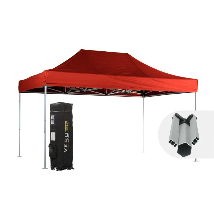 Leichtes HEX Alu Faltzelt 3x4,5m mit Dach. 100% wasserdicht. Seitenteile, vollflächiger Druck und viel Zubehör optional. Stabiles, einfaches Zeltgestell; kann von nur einer Person getragen werden. Ideal für die gelegentliche Verwendung zB als Marktzelt. Aufbau in wenigen Minuten mit dem roten Schnapper, Höhe 4-fach verstellbar. Zeltgestell: Hexagon 40mm Standbeine aus eloxiertem Aluminium mit einer Wandstärke von 1mm. Nylonverbinder in planenschonendem Design. Sämtliche Ersatzteile verfügbar. Einfache Reparatur, da sämtliche Teile verschraubt sind. Dach und Seitenteile aus dem Premium Material Supratex 600D. Dieses High-Tech Material besteht aus fünf Schichten, unter anderem eine PU-Beschichtung. An dieser perlt Wasser einfach ab, das Dach wird abwischbar und einfach zu reinigen. 100% wasserdicht, auch bei langem und starkem Regen, durch versiegelte Nähte mit Spezialband und hochwertige Verarbeitung. Zeltdach aus durchgefärbtem Faden mit UV-Stabilisierung für lange Farbechtheit. Sonnenschutz 50+. Scheuerschutz-Verstärkungen an allen wichtigen Stellen für lange Nutzungsdauer der Zeltplane. Gute Verbindung Dach-Zeltgestell mit starken Klettverschlüssen. Inklusive Premium Tragetasche. Guter Schutz für den Faltpavillon inkl. Dach durch PVC-verstärkte Ecken. Zelt muss zur Montage nicht angehoben werden. Laschen unter dem Gestell verhindern Herausrutschen. Optimierte Lastverteilung durch umlaufende Gurten. Bequeme, gummierte Griffe. Inklusive Abspannungs- und Verankerungsset bestehend aus Heringen und Seilen. Optional erhältlich: Seitenteile, Gewichte aus Stahl, mit Sand oder Wasser, Ankerlösungen und Faltpavillon Zubehör wie Seitenteile, Beach-Flags, Beleuchtung, die immer am Gestell bleiben kann, vollflächiger Druck uvm. Gestell: Aluminium eloxiert- 4 Standbeine - Durchgangshöhe 1,70 - 2 m - Hexagon-Aluminiumsteher 40mm x 1,0mm Wandstärke - Nylonverbinder in schwarz, alle verschraubt - Aufbau mit dem einfachen roten Schnapper - Metallfußplatte verschraubt - Scherenprofil 13x26mm, Wandstärke 1,0mm, mit 2 Stützrippen - Ersatzteile erhältlich Dach: Premium Material Supratex, Polyester 600D- Aufbau aus 5 Schichten, inkl. PU Beschichtung- 100% wasserdicht- versiegelte Nähte- UV stabilisiert 50+- brandhemmend nach Norm EN13501-1, Klasse B-s1,d0- abwischbar- beidseitig bedruckbar