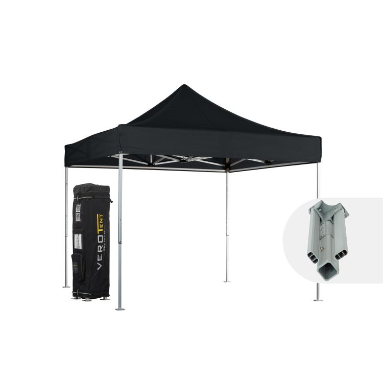 Profi Alu Faltzelt 3x3m mit Dach. Für die tägliche, professionelle Verwendung. Ergonomischer, einfacher Aufbau ohne Bücken. 100% wasserdicht. Druck, Seitenteile, Licht, farbige Zeltgestelle uvm erhältlich. Robuste Konstruktion. Einfaches Handling und reibungsloser Aufbau. Professionelle optische Erscheinung durch geraden Stand mit straffem Dach. Optimaler Wind- und Wetterschutz. Seit mehr als 20 Jahren unser Bestseller. Auch im Härtetest der Vermietung überlebt ein Classic Faltzelt (3x3; 4,5x3 und 3x6) mehr als 10 Jahre und beweist so seine herausragende Qualität. Aufbau mit dem roten Druckknopf auf Komforthöhe. 3-fach Höhenverstellbar. Durch die Höhe und die Kraftwirkung nach außen wird der Aufbau aus der Körpermitte, ohne wesentliches Bücken, möglich. Bei Faltpavillon 3x3 und 3x4,5 auch von nur einer Person. Zeltgestell aus hochwertigem, eloxiertem Aluminium mit Speziallegierung und extrem hohem Härtegrad. Sehr stabile, leichte Profile mit durchdachter Nutung und Form. Gleiter in den Standbeinen, sowie zwischen allen Alu-Teilen, damit niemals Alu auf Alu reibt. Starke Verbinder aus glasfaserverstärktem High-Tech Kunststoff halten auch größeren Belastungen stand. Dabei sind sie so geformt, dass die Reibungslosigkeit beim Aufbau und die Schonung der Dachplane gewährleistet wird. Verschraubung mit M6 Spezialschrauben, damit keine Schere auf einem Gewinde reibt. Einfache Reparatur mit normalem Werkzeug (Schraubenschlüssel, Imbus). Dach mit perfektem Sitz und guter Spannung - professionelle Optik und besserer Wasserablauf. Premium Material Supratex 600D. Wasserdicht auch bei langem, starkem Regen. Aufbau aus fünf Schichten, unter anderem: - PU-Beschichtung für einfache Reinigung, abwischbar - UV-Lackierung als Sonnenschutz 50+ - 600D Polyester Gewebe aus durchgefärbtem Faden für lange Farbbrillanz. Das Material wird in unserer Näherei sorgfältigst verarbeitet und mit Spezialband versiegelt, um absolute Wasserdichtheit zu erreichen. Scheuerschutzlappen an allen Reibungspunkten, Abspannringe, breiter Klett zur Befestigung am Gestell bzw der Seitenteile. Inklusive Tragetasche Premium+ für den Faltpavillon inkl. Dach. Einfache Montage ohne Anheben. Guter Transportschutz durch gummiverstärkte Kanten, robustes Material. Bequeme, gummierte Tragegriffe. Optimale Lastverteilung durch umlaufende Gurten. Kein Herausrutschen beim Transport. Abspannungs- und Verankerungsset bestehend aus Heringen und Seilen. Faltzelt Beschwerung aus Stahl, mit Sand oder Wasser, und viel Zubehör wie Seitenteile, Beach-Flags, Beleuchtung, die immer am Gestell bleiben kann uvm. ist natürlich verfügbar. Zelt Bedruckung mit Logo oder Foto vollflächig möglich. Gestell: Aluminium mit Speziallegierung, reibungsloser Aufbau - 4 Standbeine - Durchgangshöhe 1,70 - 2 m - Profil mit abgeschrägten Kanten, 40mm; 2mm Wandstärke - Nutung für mehr Stabilität - Speziallegierung (AIMgSi0,5-F22)mit extrem hohem Härtegrad(>15) - Verbinder aus glasfaserverstärktem High-Tech Kunststoff - verschraubt mit M6 Spezialschrauben - Einrastsystem mit rotem Druckknopf - ergonomischer Aufbau ohne Bücken- Alu-Fußplatte, verschweißt- Scherenprofil 15x30, Wandstärke 1,4mm, - Scheren abgeschrägt, genutet, mit 2 Stützrippen- Ersatzteile erhältlichDach: Premium Material Supratex, Polyester 600D- Aufbau aus 5 Schichten, inkl. PU Beschichtung- 100% wasserdicht- versiegelte Nähte- UV stabilisiert 50+- brandhemmend nach Norm EN13501-1, Klasse B-s1,d0- abwischbar- beidseitig bedruckbar