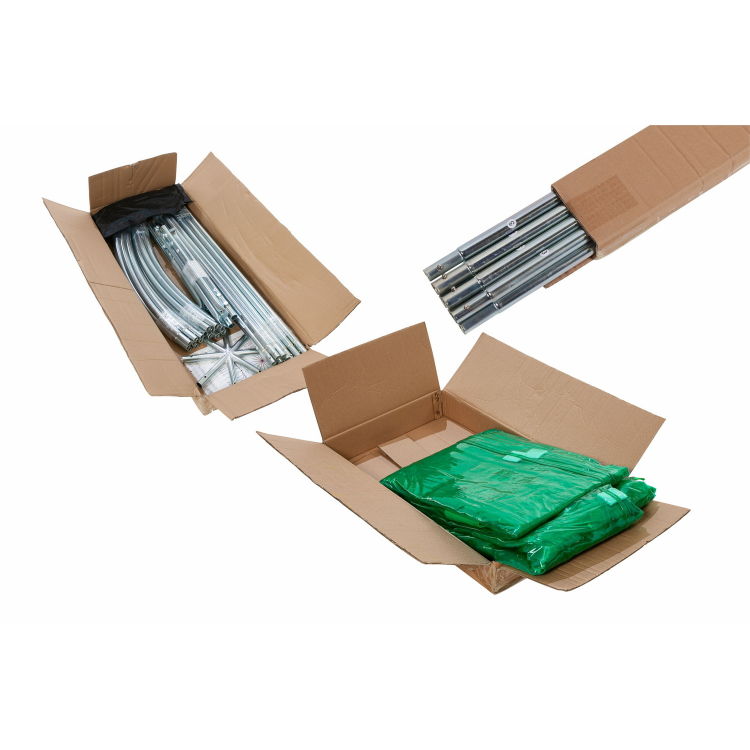 Professionelles Überwinterungszelt 2 m Ø x 2,75 m Höhe für mediterrane Pflanzen wie Palmen, Olivenbäume oder Zitronenbäume. Set aus Gestell, Plane, Abspannschnüren und Erdspießen. Adapterplatten für festen Boden erhältlich. Gestänge aus verzinkten Stahlrohren, zusammensteckbar. Um je 90cm erweiterbar. Plane aus hochwertigem PVC mit integriertem, reißfestem Gewebe. Die grüne Farbe schützt vor Verbrennungen und speichert die Wärme im Inneren. Belüftungsklappen an den Seiten für optimale Luftzirkulation. Öffnung mit Reißverschluss. Aufbau des Pflanzenzeltes idealerweise bei wärmeren Temperaturen, min. über null Grad. So ist die Plane weicher und das Arbeiten angenehmer. Wenn das PVC in sehr kaltem Zustand entfaltet wird, kann es trotz der Gewebeverstärkung Risse bekommen.- verzinktes Stahlgestänge mit 8 Standbeine- stabile Konstruktion- erweiterbares Gestell- Plane: grünes PVC- reißfest, UV-stabil- Lüftungsklappen- Eingang: Zipp- inkl. Abspannschnüre und Erdspieße- Ersatzteile verfügbar