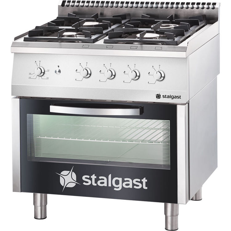 Sie sind voller Leidenschaft für das Kochen? Dieser Gasherd von Stalgast mit neuester Technologie verwandelt Ihre Passion in das reinste Vergnügen!Vier Hochleistungsbrenner liefern Ihnen die nötige Leistung von 3,5 kW, 2x 5 kW und 7 kW für Ihre Kreationen, egal ob Sie braten, frittieren, dünsten oder schmoren. Die Brennerleistung auf der untersten Stufe beträgt ca. 30% der Maximalleistung! Sie kochen mit direkt steuerbarer, unverzögerter Hitze, kostensparend und umweltfreundlich.Die Pilotflamme und die Flammenstärke lassen sich mühelos über das übersichtliche, lasergravierte Bedienfeld regeln. Die großen Design-Knebel haben eine konische Griffzone, die ein intuitives Einstellen der Flamme ermöglicht.Ihre Töpfe und Pfannen finden stets einen sicheren Halt auf den gusseisernen, einzeln abnehmbaren Topfträgern und der rückseitige Kamin sorgt für die Luftzufuhr. Ein besonderes Highlight ist die vertiefte Auffangschale unter den Brennern. Am Ende Ihres Kochtages können Sie diese einfach abnehmen und in der Spülmaschine reinigen!!Der Elektro-Backofen arbeitet mit statischer Wärme und gleichmäßiger Umluft und ist ideal für das Zubereiten und Gratinieren von deftigen Speisen, Backen von Feingebäck oder Brot etc.; Ihre Bleche oder Roste können Sie in drei verschiedenen Höhen einschieben und durch die isolierte Glastür haben Sie dank der Innenbeleuchtung stets einen Blick auf Ihre Speisen. Mittels der manuellen Lüftungsklappe können Sie für beste Backergebnisse Dampf aus dem Backofen abführen. Ein Blech am Backofenboden fängt sicher alle Krümmel auf und lässt sich leicht abwischen für einen einwandfrei gereinigten Ofen.Dieser unkomplizierte Gasherd mit Backofen unterstützt Sie in Ihrem Arbeitsalltag, besonders wenn es zu Stoßzeiten hoch hergeht und Schnelligkeit, Koordination und Effektivität gefordert sind.Dabei müssen Sie auf ein stylisches Aussehen nicht verzichten. Nicht umsonst war der Gasherd aus langlebigem, pflegeleichtem Edelstahl Finalist beim "Guten Design"-Wettbewerb 2018.Ästhetisches, modernes Industriedesign gepaart mit hoher Funktionalität und einfacher Wartung bedeuten für Sie und Ihre Mitarbeiter*innen nicht nur Arbeitskomfort, sondern auch Zufriedenheit und Wohlgefühl am Arbeitsplatz.Der Herd ist werksseitig auf G20 eingestellt. Auf Nachfrage umrüstbar auf Flüssiggas G30.