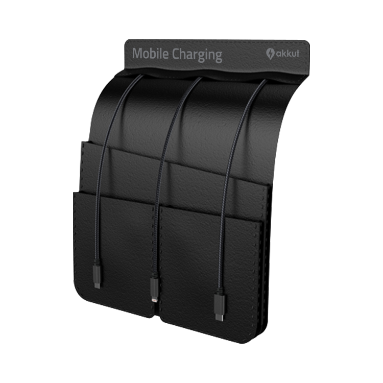 Der Smartphone-Lader in dezentem Design mit elegantem, schwarzen Kunstleder für die Autorückbank wertet jedes Fahrzeug auf.