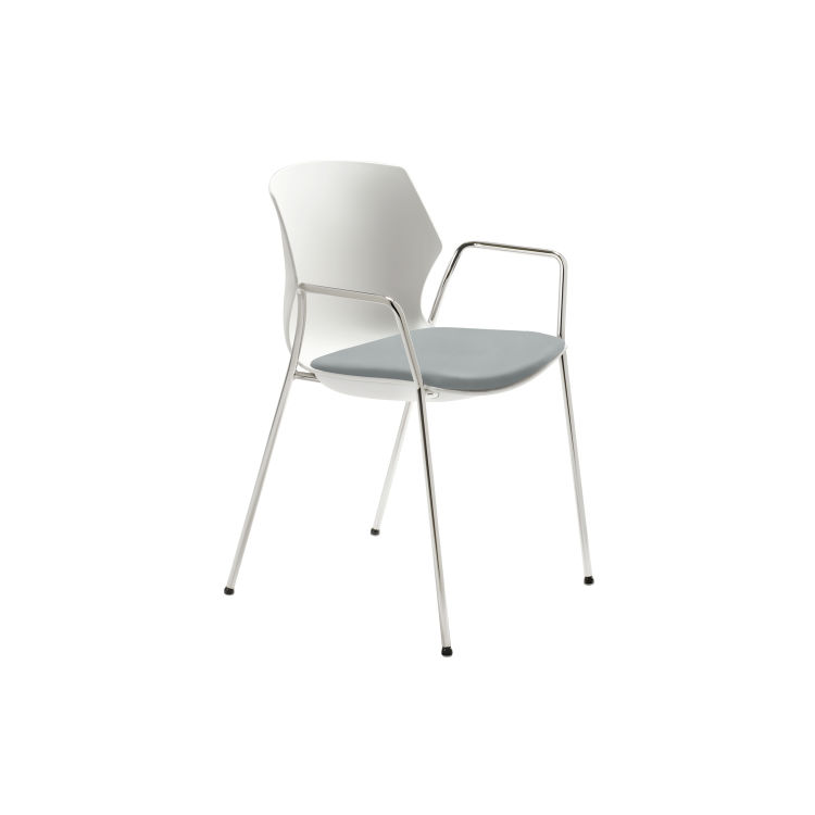 4-Fuß-Gestell Chrom, hochwertige Kunststoffschale graublau mit hohem Sitzkomfort, gepolsterter Sitz, stapelbar (bis zu 6 Stühle), Sitzhöhe 48 cm. Inkl. fester Armlehnen Chrom. Belastbar bis 150 kg. Sitzbezug: Kunstleder für höchste Ansprüche im Objektbereich. Äußerst strapazierfähig und robust, schmutzabweisend, desinfizierbar, hygienisch und leicht mit Wasser und Neutralseife zu reinigen. Hautverträglich - angenehm weich. Sehr gute Lichtechtheit. Brandschutzgeprüft nach EN 1021-1 (Zigarettentest), Lichtechtheit: 6 (ISO 105 - B02), Scheuertouren nach Martindale > 50.000, Oeko-Tex® Standard Klasse I.