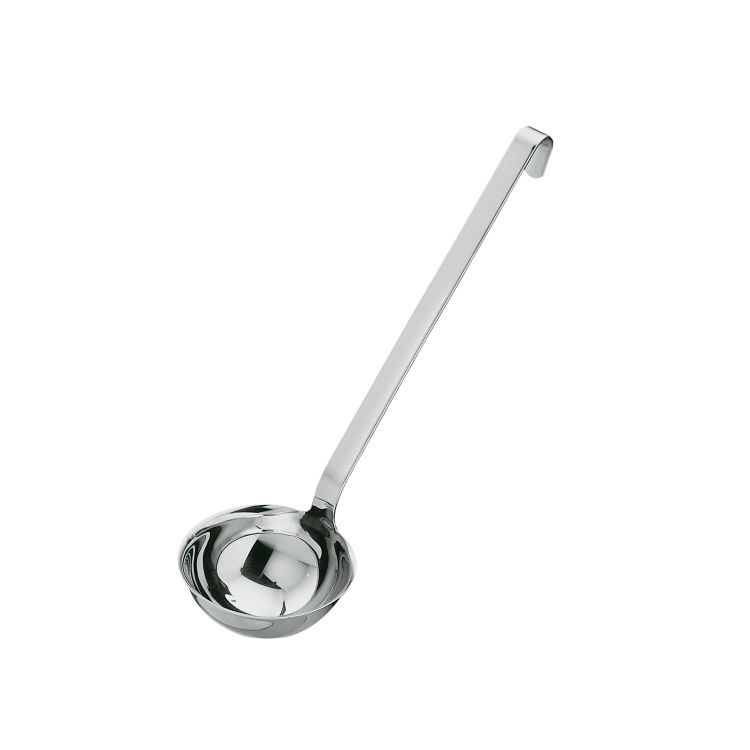 Mit Rundum-Schüttrand gegen Abtropfen. Fünf verschiedene Größen und Stiellängen bieten für Schöpfen und Dosieren der unterschiedlichsten Mengen immer die Lösung nach Maß. Komplett aus Edelstahl 18/10.