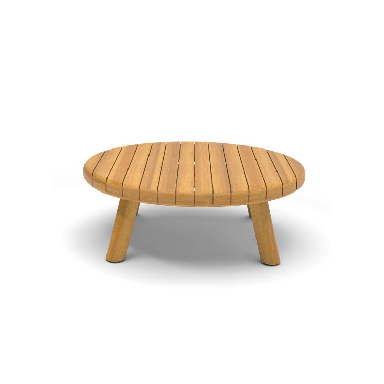 Der Matera Kaffeetisch Akazie mit einem Durchmesser von 60 cm verleiht Ihrem Außenbereich einen Hauch von Eleganz. Dieser kompakte Tisch in Akazien-Optik eine stilvolle Abstellfläche für Getränke und Deko-Elemente und passt hervorragend zu jeder Terrassen- oder Garteneinrichtung.