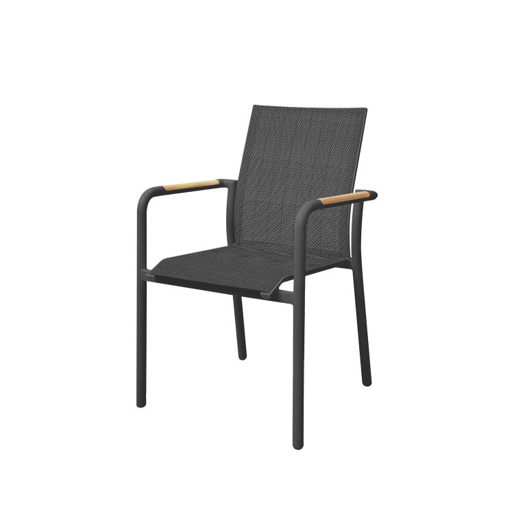 Der Paros Outdoor-Stapelsessel hat ein Gestell aus rostfreiem Aluminium und eine Bespannung aus witterungsbeständigem Ergotex-Gewebe. Der rostfreie, leichte Stuhl ist unkompliziert im Handling und platzsparend stapelbar. Die stilvollen Armlehnenaufsätze aus Teakholz geben ihm einen Hauch von Eleganz, und das ergonomische Design der Rückenlehne bietet erstklassigen Sitzkomfort. Der Paros Stapelsessel ist sowohl für den Privatgebrauch als auch den Objektbereich geeignet und verbindet Eleganz mit Funktionalität.