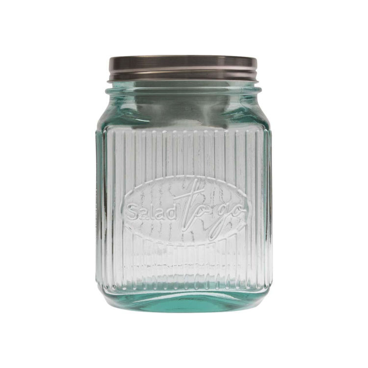 Genießen Sie Ihren Salat immer und überall mit dem praktischen Recycling-Schraubglas 'Salad to go'. Das langlebige, minimalistisch designte Glas mit Retrocharme verfügt im Schraubdeckel über einen Einsatz aus Edelstahl, in dem Sie Dressing oder Joghurt separat transportieren können. So bleibt Ihr Salat im Glas knackig und frisch! Schrauben Sie den Deckel ab, gießen Sie die Sauce über den Salat und schon können Sie auf der Arbeit, in der Schule oder unterwegs genießen. Erhältlich mit 0,8 oder 1,25 l Fassungsvermögen.