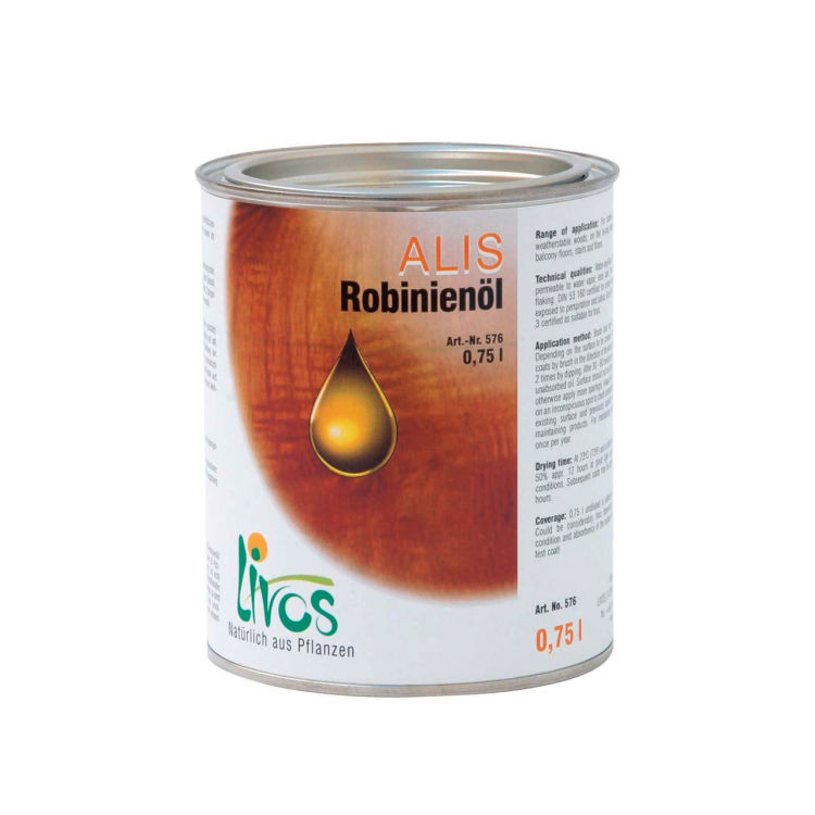 Mit dem Livos Robinienöl 'Alis' pflegen Sie neben Robinie auch andere witterungsbeständige Holzarten. Das Öl ist dampfdurchlässig und wasserabweisend. Es eignet sich optimal zur sanften Reinigung und verhindert, dass Patina und Flecken gebildet werden. Inhalt reicht unverdünnt für rund 5 m². Glasflasche. Farbe braun. Nicht für Balkonfußböden und andere Trittflächen geeignet.