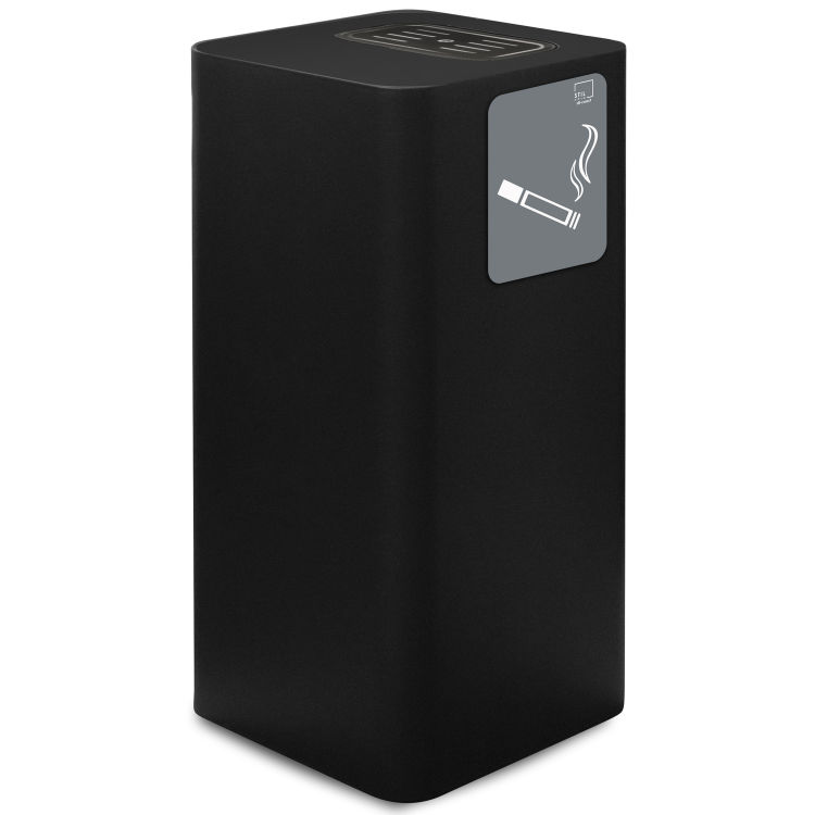 Eleganter und funktioneller überdachter Aschenbecher für den Außenbereich aus grau lackiertem Stahl. Magisches Piktogramm mit "Aschenbecher"-Symbol, leicht an der Vorderseite des Behälters zu befestigen und für eine gründliche Reinigung zu entfernen. Inklusive 1 kg Sand. Ablage für Kippen mit abnehmbarem Stahlgitter zur einfachen Entleerung und Reinigung