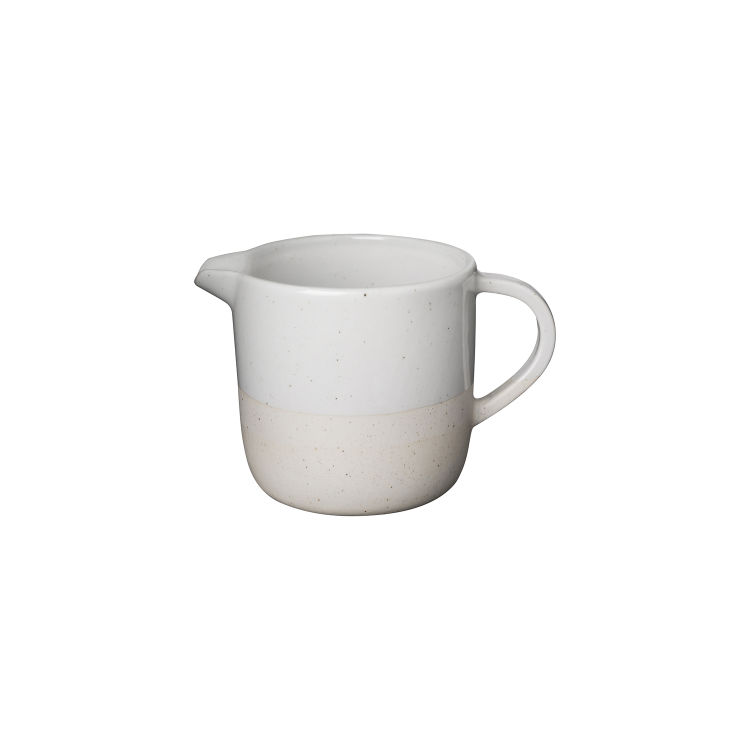 Sanft und rau – als ob Wasser über Sand fließt. Das Keramik-Milchkännchen SABLO besteht aus einer einzigartigen Mischung aus farbigem Ton, Quarz, Mineralien und Oxiden. Die leicht gesprenkelte Optik harmoniert perfekt mit der Farbkombination aus Grau- und Beige-Tönen und wird haptisch verstärkt durch die teilweise aufgetragene Glasur. Aufgrund der Farbabweichungen ist jedes Teil ein Unikat mit einem ausgeprägten handwerklichen Erscheinungsbild. Spülmaschinen- und mikrowellengeeignet. STEINGUT Sablo besteht aus einer einzigartigen Mischung aus farbigem Ton, Quarz, Mineralien wie Calcit sowie Oxiden. Aus Steingut werden Teller, Geschirr, Übertöpfe und Schalen hergestellt, die im Gießverfahren ausgeformt werden. Die hohen Temperaturen während des Brennvorgangs machen Steingut stabiler als Ton und weniger durchscheinend als Porzellan. Die Farben, Formen, das Aussehen der Glasur sowie das Gesamtbild hängen von der Brenntemperatur und der Brenndauer ab und variieren. Dadurch ist jedes Stück ein Unikat und kann individuelle Strukturen und Schattierungen aufweisen. Der Ton von Sablo wird bei einer sehr hohen Temperatur gebrannt und muss daher nicht überall glasiert werden.