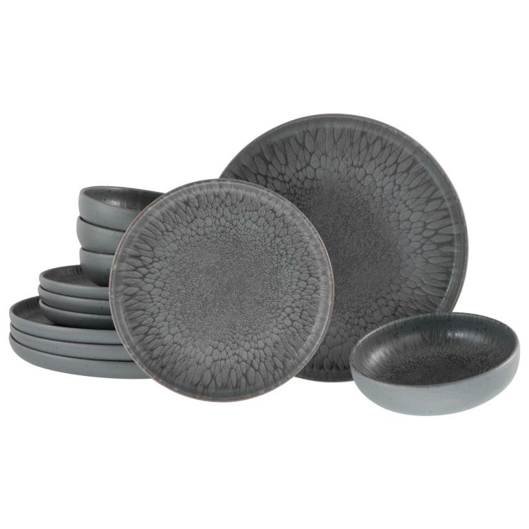 EDLES TELLERSET: 12 Designer Stücke warten darauf, Deinen Tisch zu schmücken. Das 12-teilige Service beinhaltet 4 riesige Speiseteller (Ø28 cm), 4 Suppen- bzw. Pastateller (Ø22 cm) sowie 4 Dessertteller (Ø21 cm).