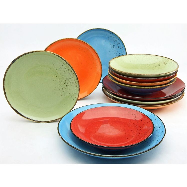 EDLES TELLERSET: 12 einzigartige Stücke warten darauf, deinen Tisch zu schmücken. Das Set beinhaltet 4 Speiseteller (Ø 27 cm), 4 Dessertteller (Ø 21 cm) und 4 Suppenteller (Ø 22 cm).