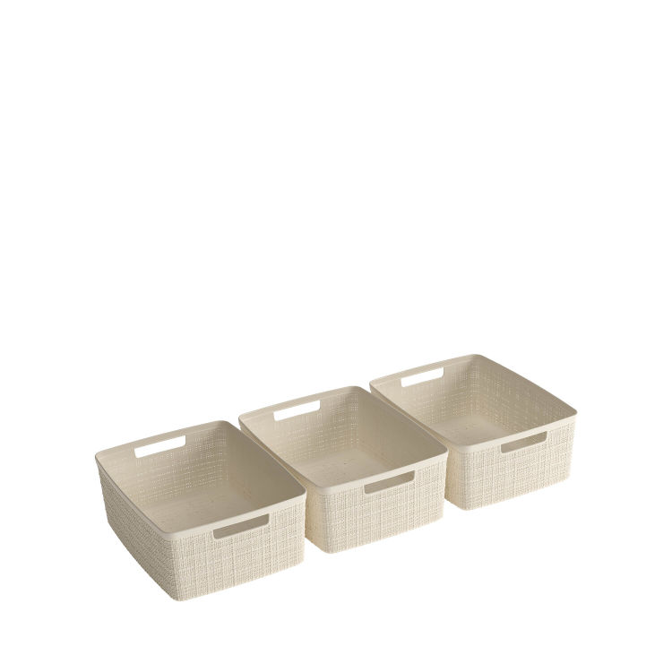 Multifunktionale Aufbewahrungsbox in einzigartige Jute Optik und Haptik, mit bequemen Tragegriffen, ineinander stapelbar, aus min. 100% Recyclingmaterial, ideal für die Aufbewahrung in Wohnzimmern, Schlafzimmern, Badezimmern und Büros.