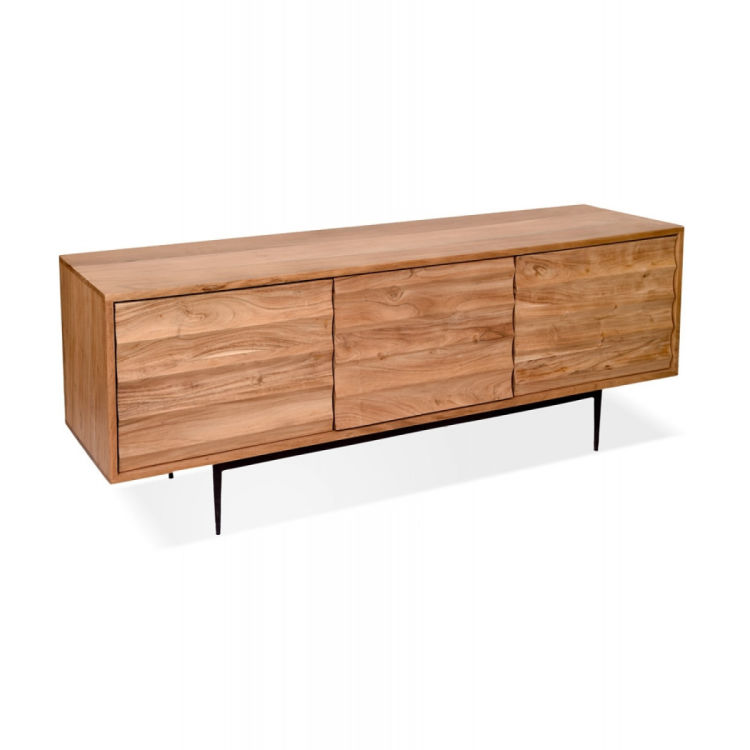 Erleben Sie mit dem Design-TV-Möbel 'GALILEO' eine harmonische Verbindung von natürlicher Eleganz und industriellem Stil. Hergestellt aus massivem Akazienholz, verleiht dieses Möbelstück Ihrem Empfangsbereich eine warme und authentische Note. Die schwarzen Metallfüße sorgen für ein modernes Aussehen und einen auffälligen Kontrast.