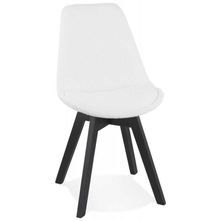 Das weiche, bouclé-weiße Gewebe und die schwarzen Holzbeine verleihen dem Stuhl einen modernen und anspruchsvollen Look, der sich nahtlos in jede Büroeinrichtung integriert.