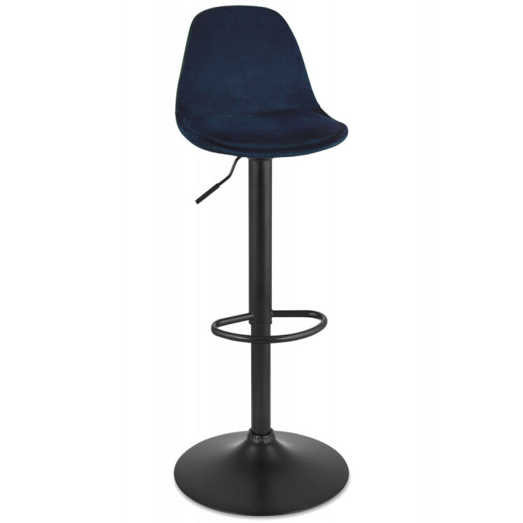 Verleihen Sie Ihrem Innenraum mit dem höhenverstellbaren Barhocker "FINLEY" einen Hauch von Eleganz und Modernität. Das zeitgemäße Design und der tiefblaue Samtbezug bringen einen schicken und raffinierten Akzent in Ihre Geschäftsräume.