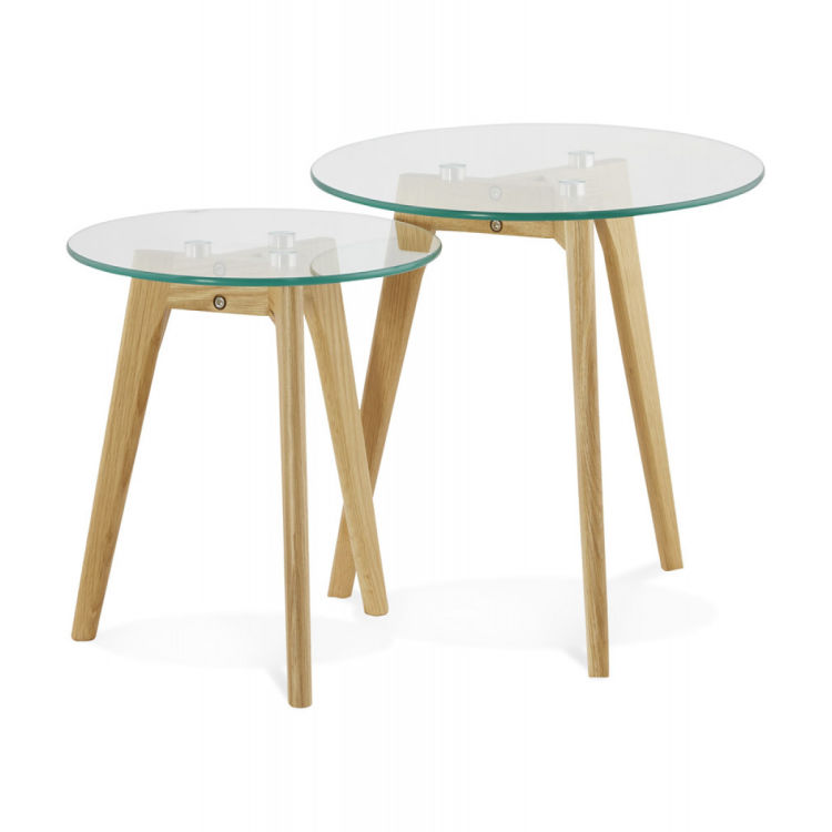 Dieses Set aus zwei runden, transparenten Glastischen bringt Leichtigkeit und Raffinesse in Ihre Geschäftsräume. Die stapelbaren Tische sind ideal für platzsparende Lösungen und zeichnen sich durch ihr schlichtes, zeitgemäßes Design aus.