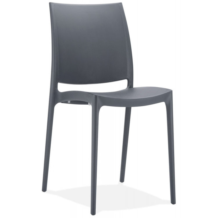 Mit seinem schlichten und effektiven Design fügt sich der Stuhl ENZO aus dunkelgrauem, formgepresstem Kunststoff perfekt in jede Innen- und Außeneinrichtung ein. Ob zur Gestaltung Ihres Speisesaals, Ihrer Terrasse oder Ihres Gartens, er bringt einen modernen Akzent in jeden Raum.