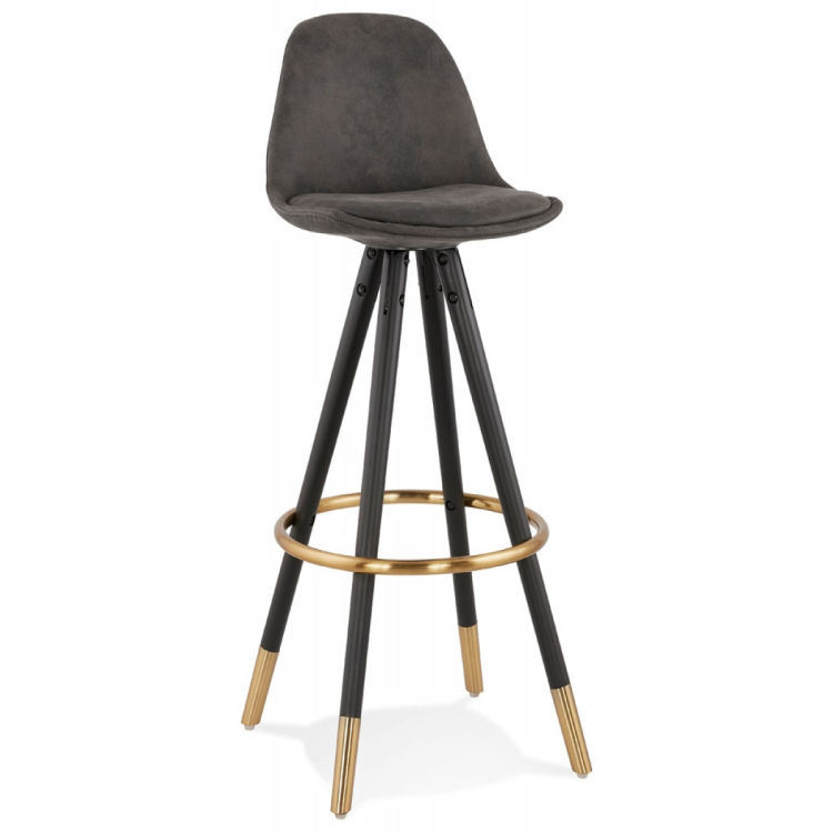 Dieser Hocker vereint retrocharme mit modernem Komfort. Die Sitzfläche aus grauem Mikrofaserstoff sorgt nicht nur für ein angenehmes Gefühl, sondern ist auch pflegeleicht und langlebig. Die schwarzen Holzbeine mit goldenen Akzenten verleihen dem Hocker eine edle Note und passen perfekt zu verschiedenen Einrichtungsstilen.