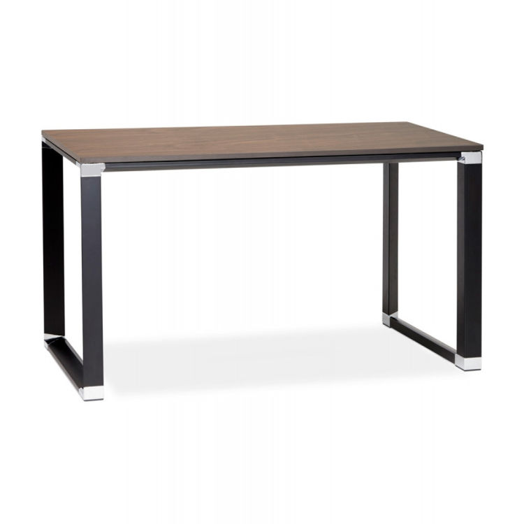 Mit seinen kompakten Abmessungen von 140x70 cm bietet dieser Schreibtisch ausreichend Platz für alle Ihre Arbeitsutensilien, ohne den Raum zu überladen. Das markante industrielle Design, das Metall in Schwarz mit einer Nussbaum-Oberfläche kombiniert, verleiht Ihrem Büro einen modernen und zeitlosen Look. Die stabile Metallkonstruktion, ergänzt durch chromfarbene Akzente, sorgt für Langlebigkeit und Robustheit.