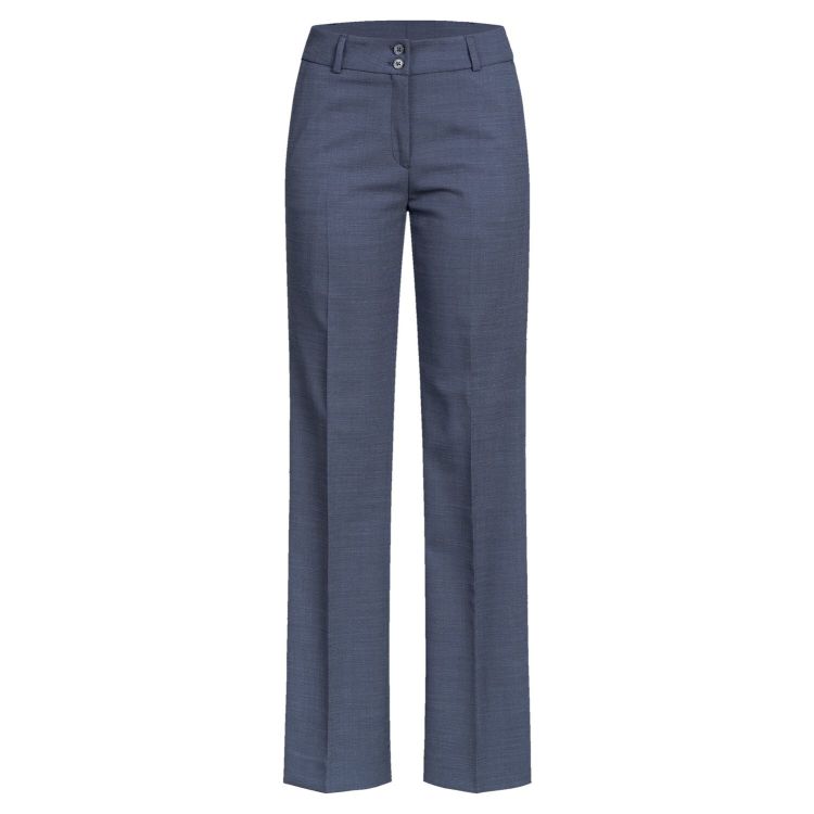 mittlere Leibhöhe, gerader Beinverlauf, 2 Seitentaschen, 2 blinde Gesäßleistentaschen, Vorderhosenfutter, 52 % Polyester, 46 % Schurwolle, 2 % Elasthan