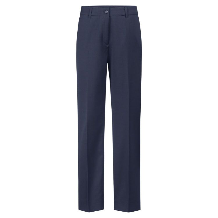 hohe Leibhöhe, Gummibund hinten, gerader Beinverlauf, 2 Flügeltaschen, 1 blinde Gesäßleistentasche, Vorderhosenfutter, 52 % Polyester, 46 % Schurwolle, 2 % Elasthan