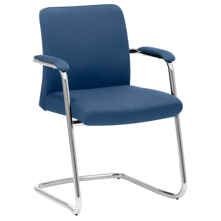 Freischwinger, Gestell Chrom, Sitz und Rücken gepolstert, Armauflagen Kunststoff schwarz, transparente Universalgleiter, Sitzhöhe 48 cm. Bezug: weiche Mikrofaser mit angenehmer Haptik und einer rustikalen, lederähnlichen Optik.
