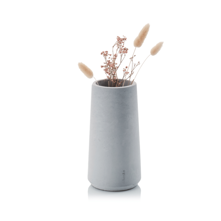 NEU: Jetzt noch individueller! Wir haben uns für eine Weiterentwicklung unseres beliebten Weinkühlers entschieden und haben nun eine Vasenkollektion als Perfect Match auf den Markt gebracht. Lass dich von den frischen Designs überraschen und sorge für echte Farbfreude. Der Beton selbst ist dabei eingefärbt, also bleibt die typische Struktur mit leichten Farbvarianzen bestehen. Unsere Vasen werden mit einem passgenauen Korkuntersetzer geliefert. So wird die Oberfläche von Tisch und Co. geschützt. Die Vasen sind hydrophobiert und damit wasserdicht. Media: das mittlere Modell der Vasenkollektion.