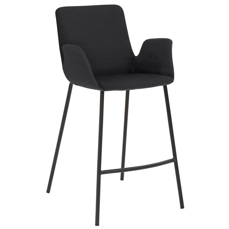 4-Fuß-Gestell pulverbeschichtet schwarz, Sitz mit integrierten Armlehnen, Vollpolsterung, Sitzhöhe 65 cm.