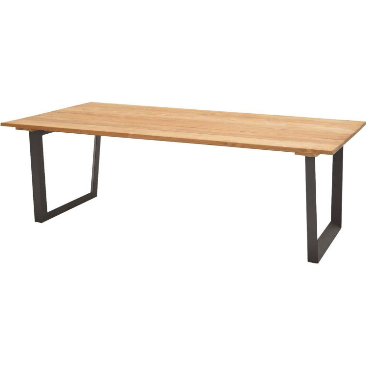 Ein Meisterwerk der Ästhetik und Nachhaltigkeit! Schon der Anblick dieses Gartentisches ist etwas ganz Besonderes. Doch vor allem die Tischplatte stellt ein Highlight dar. Diese ist nämlich aus recyceltem, FSC-zertifiziertem Teakholz gefertigt. Das ist einzigartig. Die Platte ist auf ein Gestell aus dunkelgrau pulverbeschichtetem Aluminium angebracht. Dieses wirkt besonders edel, elegant und modern. Das minimalistische Design trägt zur Langlebigkeit des Gartentisches bei. Ideal für große Terrassen oder den Garten.