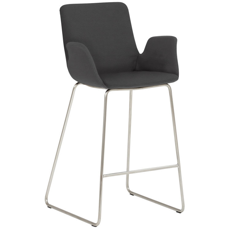 Kufengestell Edelstahl gebürstet, Sitz mit integrierten Armlehnen, Vollpolsterung, Sitzhöhe 65 cm.