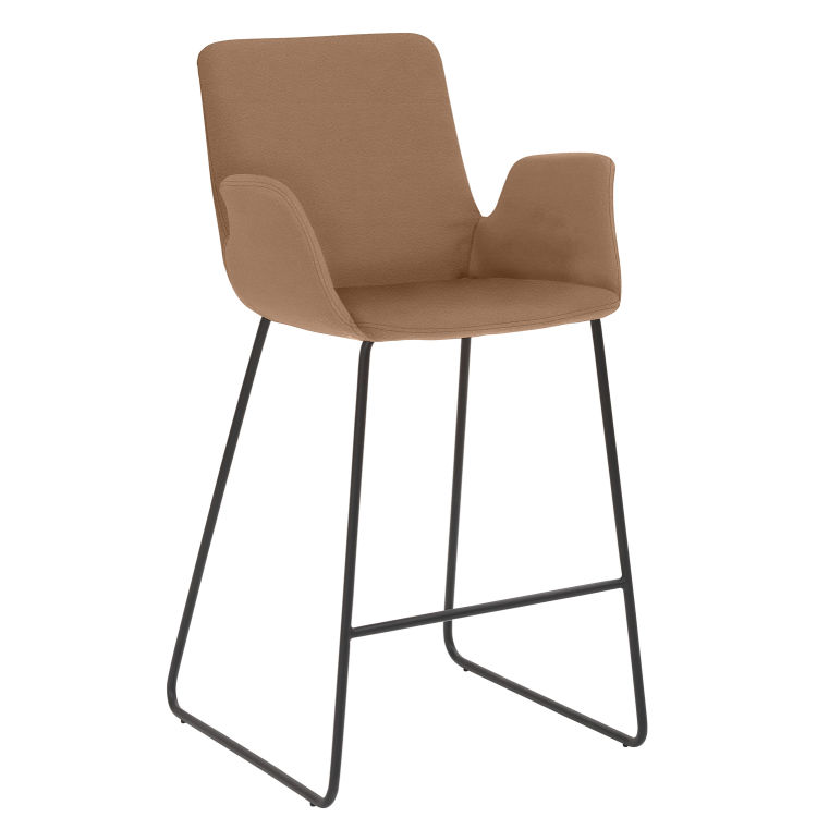 Dieser Tresenhocker mit integrierten Armlehnen und modernem, pulverbeschichtetem schwarzen Kufengestell mit bequemer Fußablage ist eine stilvolle und komfortable Sitzlösung für moderne Gastronomie- und Veranstaltungsräume. Mit seiner bequem gepolsterten Sitzschale mit den integrierten Armlehnen bietet er das entspannte Sitzgefühl eines Sessels, der Bezug aus strapazierfähiger, angenehm weicher Mikrofaser überzeugt durch seine lederähnliche Optik überzeugt und bietet auch bei längerer Nutzung ein angenehmes Sitzgefühl.