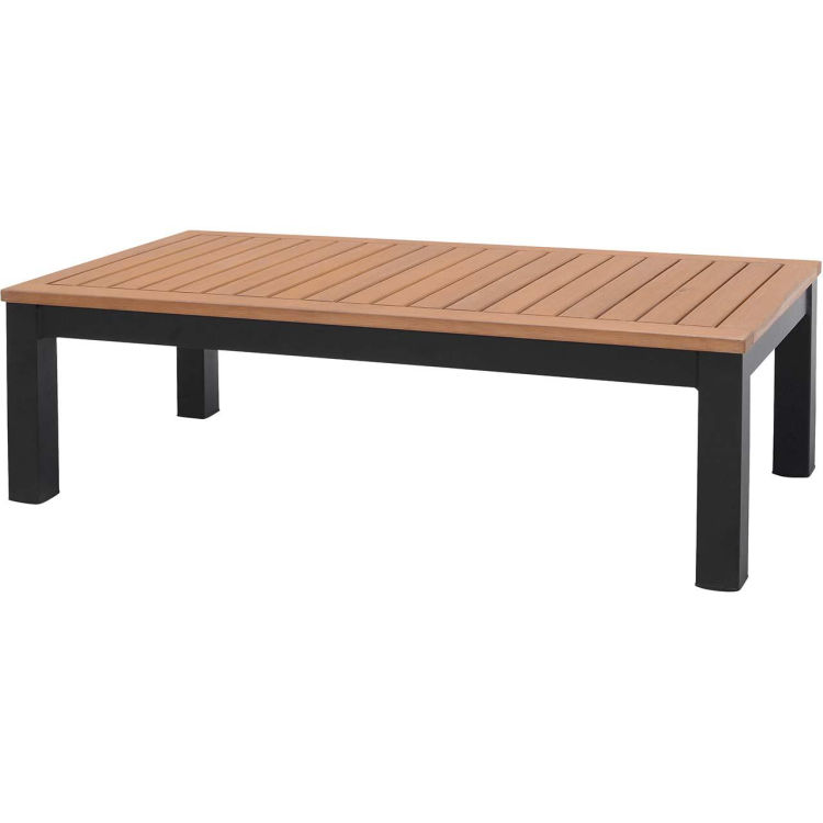 Der perfekte Couchtisch für eine größere Lounge-Landschaft auf Terrasse oder im Garten. Der rechteckige Tisch vereint Funktionalität und Ästhetik auf einzigartige Weise. Das stabile, pulverbeschichtete Aluminiumgestell überzeugt mit klarer Formensprache, die Robustheit ausstrahlt. Die Tischplatte verströmt mit dem FSC-zertifizierten Eukalyptusholz einen natürlichen Charme. Der Garten-Couchtisch passt zu verschiedenen Gartensofas und Lounge-Liegen.