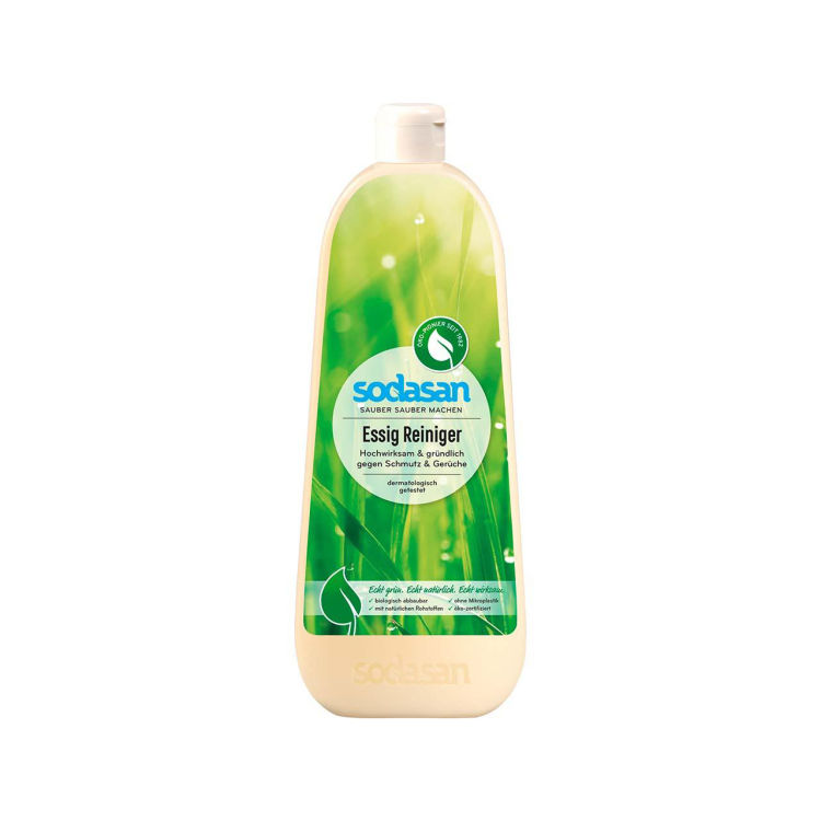 Der vegane Sodasan Essigreiniger reinigt Bad und Küche wirkungsvoll. Schmutz wie Seifenreste in Waschbecken, Badewannen oder auf Fliesen wird ganz natürlich entfernt. Unangenehme Gerüche z.B. in Kühlschränken werden effektiv gebunden und neutralisiert. Die enthaltene Säure aus Essig befreit Oberflächen von Kalk und Wasserflecken. Der universelle Haushaltsreiniger ist sehr ergiebig: 100 ml reichen für 10 l Wasser. In verschiedenen Größen.