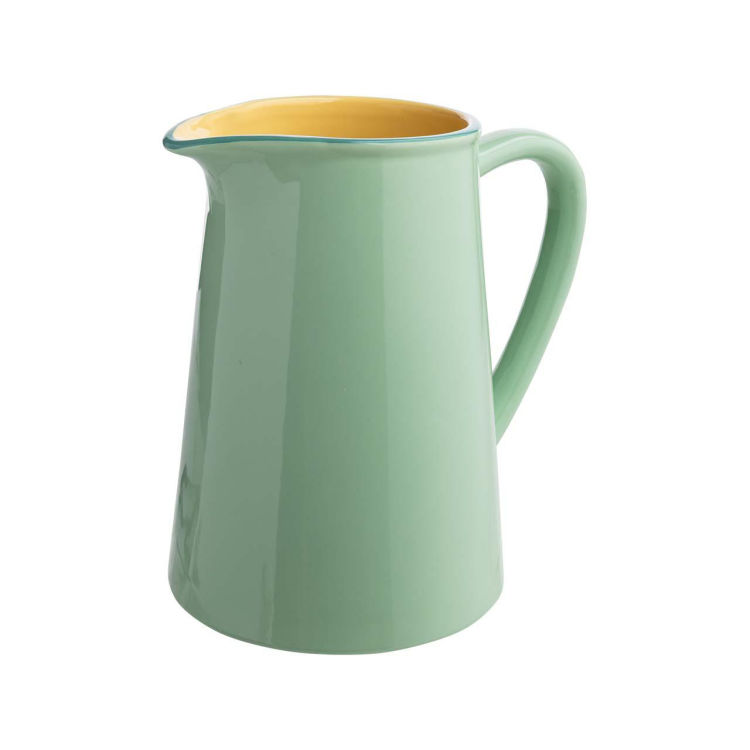 Dieser vielseitige Krug von tranquillo verzaubert mit Stil und Funktionalität! Ob für erfrischende Getränke oder als Vase für stilvolle Blumenarrangements, er überzeugt durch sein modernes Design und kräftiger Farbe. Das harmonische Farbspiel und die großzügige Form machen ihn zum Blickfang auf jedem Tisch. Der Krug aus robustem Steingut ist für Mikrowelle und Spülmaschine geeignet und hat ein Fassungsvermögen von 1,5 l. H 20 cm.