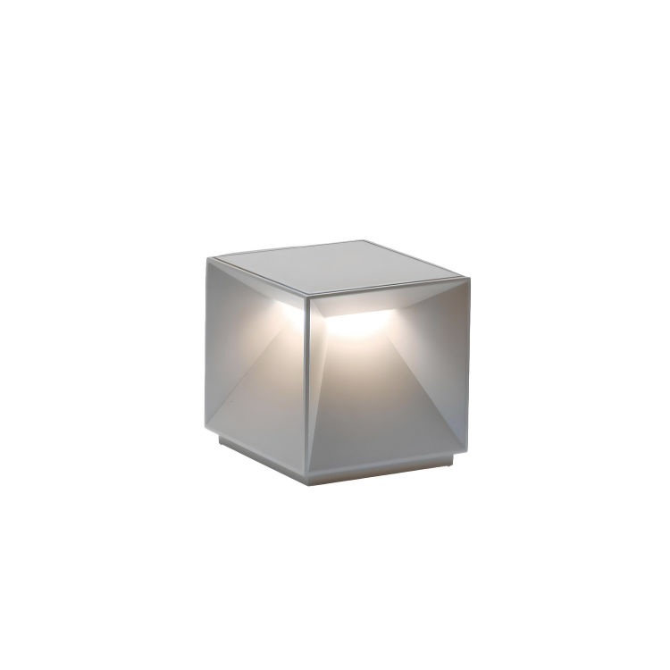 Die LED-Tischleuchte DICE besteht aus lackiertem Aluminiumdruckguss. Über einen “Soft-Touch“- Knopf kann die Lichtintensität und der Farbton gewechselt werden zwischen 2700K und 3000K (warmweiß – neutralweiß).