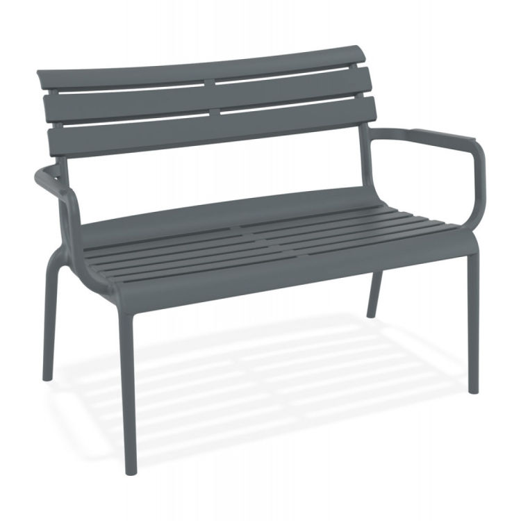 Gestalten Sie Ihren Außenbereich mit der stilvollen Gartenbank „AROMA XL“ in elegantem Dunkelgrau. Diese moderne Bank bietet Platz für 2 bis 3 Personen und ist aus hochwertigem, witterungs- und UV-beständigem Kunststoff gefertigt. Mit praktischen Armlehnen und großzügigen Abmessungen (116 x 70 x 75 cm) genießen Sie optimalen Komfort. Die pflegeleichte Oberfläche garantiert Langlebigkeit. Die Bank wird gebrauchsfertig geliefert, ohne Montageaufwand. Ergänzen Sie Ihren Komfort mit passenden Sitzkissen, die separat erhältlich sind.