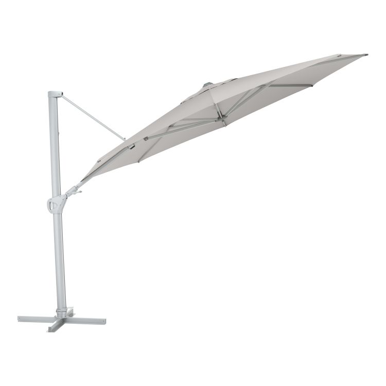 Der Ampelschirm EASY SWING lässt sich mit einer Kurbel einfach Öffnen und Neigen und ist in unterschiedlichen Farben erhältlich. Problemloses vertikales Neigen des Schirms mit Hilfe des Verstellmechanismus, bequem 360° drehbar mittels Tritthebel. Bezug mit Windauslassöffnung, auswechselbarer Schirmbezug aus 100% Polyester 220 g/m² mit Lichtschutzfaktor 50+ nach australisch/neuseeländischem Standard S/NZS4399:1996. Inkl. Abdeckhaube (210 g/m² Polyester) und Kreuzständer, exkl. Bodenplatte, Kreuzständer ausgelegt auf Bodenplatten 50 x 50 cm.