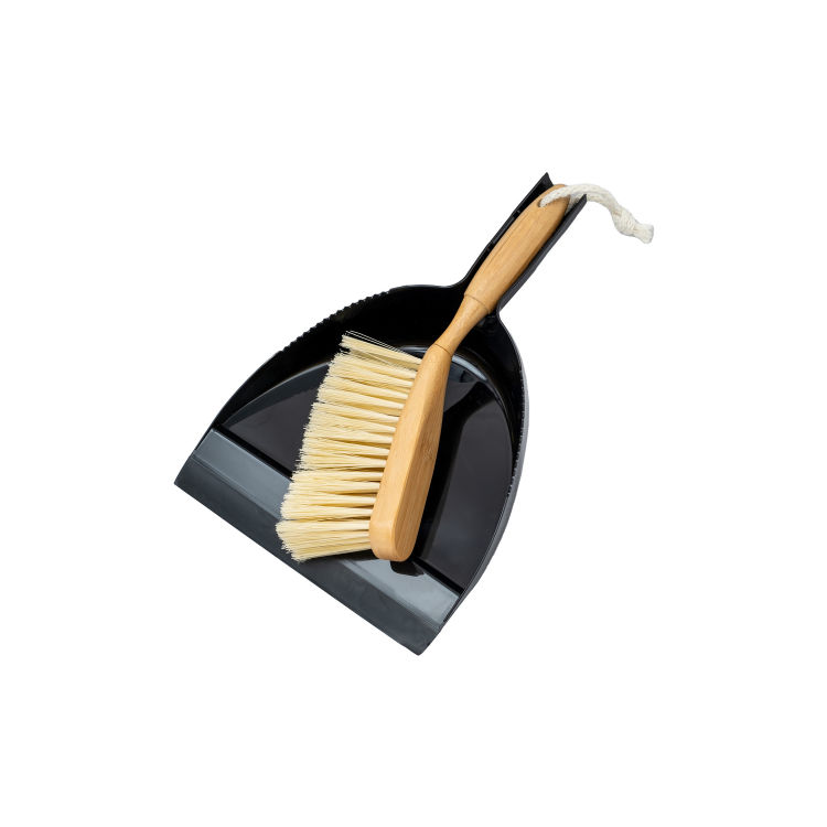 Kehrset mit Bambusgriff. Handfeger & Schaufel mit Gummilippe