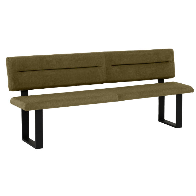 Bequeme Sitzbank, gepolsterte Sitzfläche und Rückenlehne mit Einzugsnaht, Kufen-Gestell pulverbeschichtet schwarz, Bankbreite 1,80 m, Sitztiefe 44 cm, Sitzhöhe 48 cm. Belastbarkeit: max. 120 kg pro Benutzer. Bezogen mit weichem und atmungsaktivem Mikrofaser-Stoff mit samtiger Haptik, der sich aufgrund seiner Kratzfestigkeit ideal auch für Haustierbesitzer eignet. 100 % Polyester. Umweltfreundlich: OEKO-TEX® Standard 100, Scheuertouren nach Martindale: ca. 90.000, Lichtechtheit: 5, Reibechtheit trocken und nass: 4–5, Pilling: 4-5, Kratzfestigkeitstest (gem. snagging BS 8479:2008) mit Bestnote bestanden.