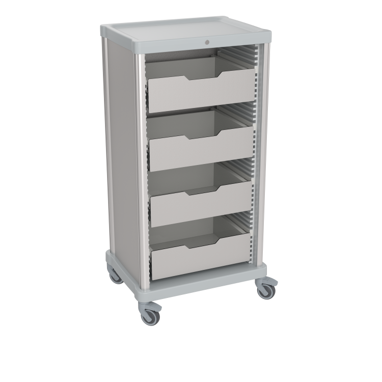 Entdecken Sie die perfekte Kombination aus Funktionalität und hochwertigem Design mit unserem Minibarauffüllwagen. Speziell für die professionelle Hotellerie entwickelt, erleichtert dieser Wagen das Auffüllen und Warten Ihrer Minibars erheblich. Dank der robusten Struktur mit Aluminiumstehern und einer praktischen Arbeitsfläche ist er ein unverzichtbarer Helfer im Hotelalltag. Alle Modelle sind mit extrem hochwertigen Vollgummi-Rollen ausgestattet, die sich um 360° schwenken lassen und so höchste Mobilität garantieren, auch bei voller Beladung. Jeder Wagen bietet eine totale Tragkraft von über 200 kg und ist einfach zu reinigen. Für Ihre Bequemlichkeit wird dieser Minibarwagen vollständig montiert geliefert, und Ersatzteile sind jederzeit verfügbar. Wenn Sie zusätzlichen Stauraum benötigen, ist der Hohe Minibarauffüllwagen mit 4 Schubladen die ideale Lösung. Dieser größere Wagen, gefertigt aus Aluminium, HPL, ABS und Alupanel, bietet eine offene Front für schnellen Zugriff. Er verfügt über vier robuste Schubladen, die jeweils 50 kg tragen und sich zu 110% ausziehen lassen, was die Organisation und das Auffüllen erleichtert. Trotz seiner Höhe von 140 cm (Maße: 72 x 57 x 140H cm) bleibt dieser 54 kg schwere Wagen dank der vier hochwertigen Ø 100 mm Vollgummi-Rollen (zwei davon mit Feststellbremsen) hervorragend manövrierbar.