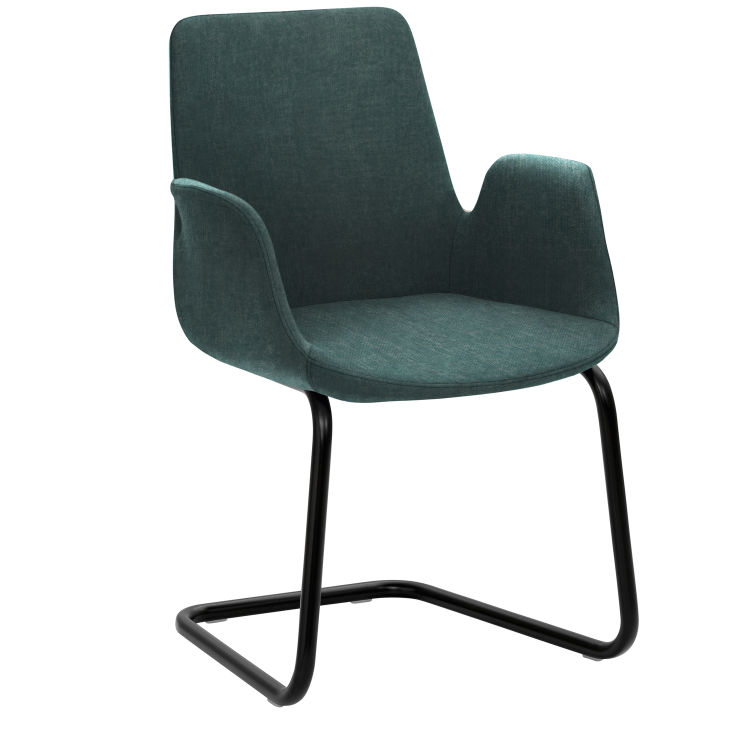 Freischwinger-Gestell, Chrom gebürstet Edelstahllook, mit integrierten Armlehnen, rundum gepolstert, Sitzhöhe 46 cm. Bezogen mit weichem und atmungsaktivem Mikrofaser-Stoff mit samtiger Haptik, der sich aufgrund seiner Kratzfestigkeit ideal auch für Haustierbesitzer eignet. 100 % Polyester. Umweltfreundlich: OEKO-TEX® Standard 100, Scheuertouren nach Martindale: ca. 90.000, Lichtechtheit: 5, Reibechtheit trocken und nass: 4–5, Pilling: 4-5, Kratzfestigkeitstest (gem. snagging BS 8479:2008) mit Bestnote bestanden.