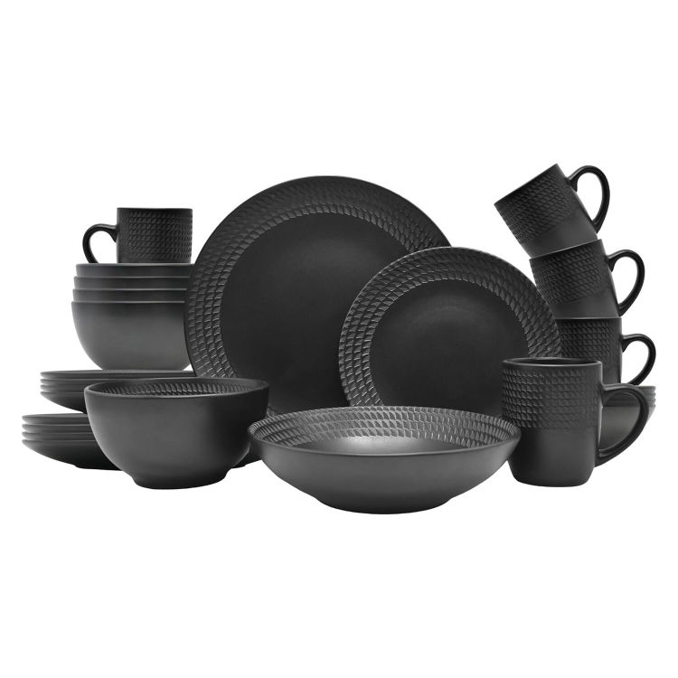 STILVOLLES GESCHIRRSET MIT STRUKTUR: Das "BLACKSTYLE" Kombiservice für 6 Personen beeindruckt durch sein ansprechendes Design mit einer markanten Struktur, die jedem Tisch eine einzigartige Textur und Eleganz verleiht.