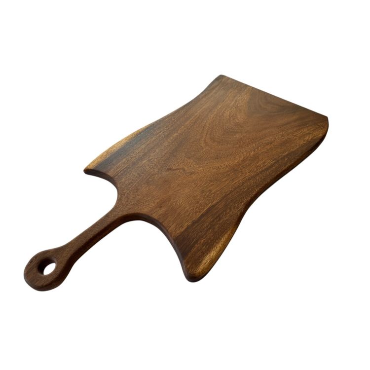 Dieses handgefertigte Schneidebrett aus 3 cm starkem massivem Suar-Holz vereint natürliche Schönheit mit praktischer Vielseitigkeit. Jedes Stück ist ein Unikat – mit individuellen Maserungen, organischen Formen und warmen Farbtönen, die von hellem Braun bis zu dunklem Schokoladenbraun reichen.