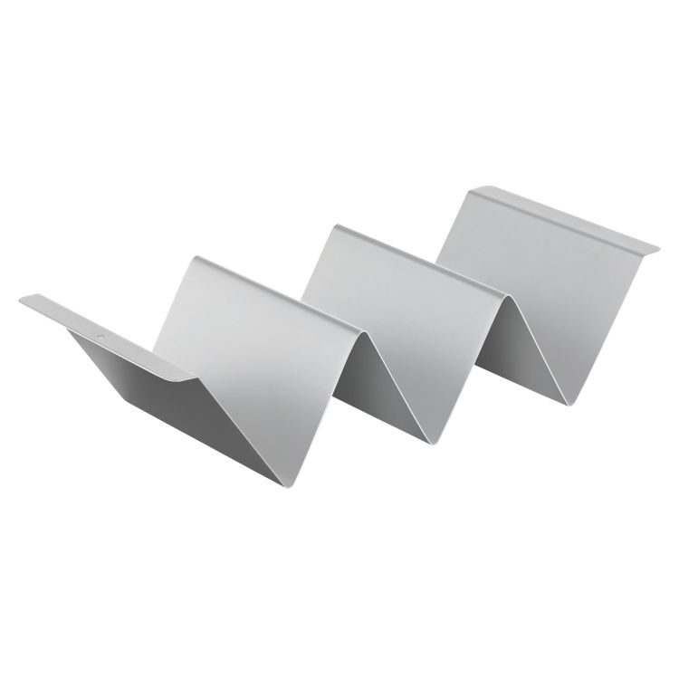 Diese Snackwelle aus Edelstahl ist eine praktische Servier- und Präsentationslösung für Snacks wie Tacos oder Sandwiches. Sie ist perfekt für den Einsatz in To-go-Geschäften, an Buffets oder zur Präsentation von Fingerfood geeignet.Sie bietet drei Fächer, die jeweils eine Fachbreite von 64 mm aufweisen. Der seitlich ausgestellte Rand dient gleichzeitig als Tragegriff, was den Transport und das Servieren der Snacks einfach und komfortabel macht.Gefertigt aus Edelstahl ist sie spülmaschinenfest, was die Reinigung nach Gebrauch erheblich erleichtert.