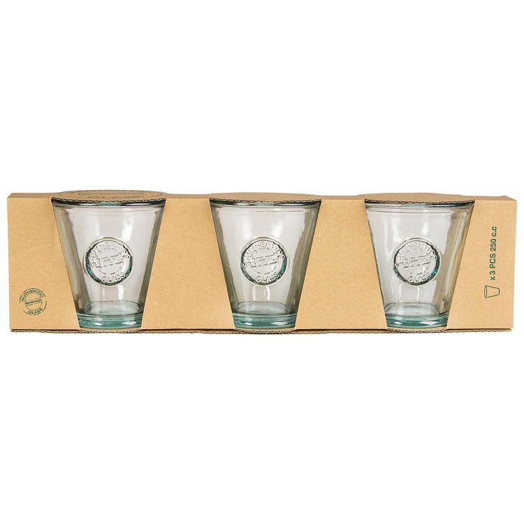 Diese wunderschönen Trinkgläser überzeugen mit ihrer stabilen Qualität und der hochwertigen Verarbeitung aus Recyclingglas. Das Fassungsvermögen von 0,3 l ist perfekt für Ihre Lieblingsgetränke. Mit breitem Trinkrand. 1 Pack = 3 Stk.