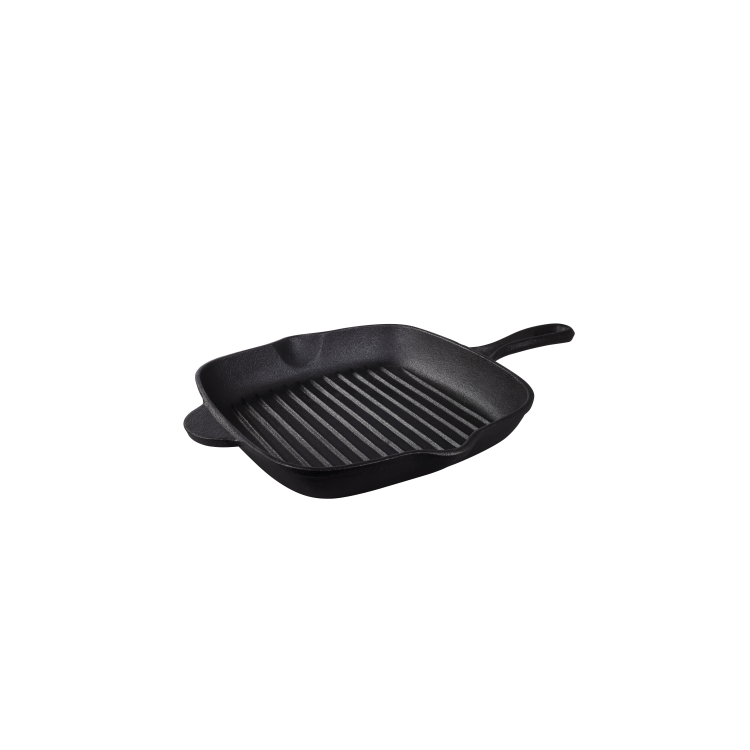 Die Tramontina Grillpfanne BLACK aus hochwertigem Gusseisen ist ideal für das scharfe und krosse Anbraten von Fleisch, Burger, Würstchen und Fisch. Die gerillte Oberfläche sorgt für markante Grillstreifen, die nicht nur optisch beeindrucken, sondern auch köstliche Röstaromen und einen intensiven Geschmack entfalten. Gleichzeitig ermöglichen die Rillen, dass überschüssiges Fett mühelos abläuft – perfekt für eine gesündere, fettarme Zubereitung. Das langlebige Gusseisen speichert die zugeführte Wärme sehr lange und verteilt sie optimal und gleichmäßig, sodass Steaks, Hähnchenbrust oder Gemüse perfekt gegart werden. Die quadratische Grillpfanne eignet sich für alle Herdarten, einschließlich Induktion, und kann auch im Backfen oder auf dem Grill verwendet werden. Ihr ergonomischer Stielgriff ermöglicht ein sicheres Handling und der Gegengriff sorgt für zusätzliche Sicherheit und Stabilität. während die seitlichen Ausgüsse das Entfernen von Flüssigkeiten erleichtern. Maße: 27 x 27 cm.