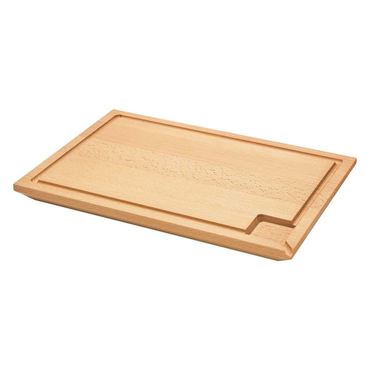 Rechteckiges Schneidebrett aus Holz mit Saft-Rille und praktischer Ausgießhilfe für Flüssigkeiten sowie nach innen abgeschrägten Kanten. Aus FSC-zertifiziertem Buchenholz. B 36,5 x T 25 cm x 3 cm.